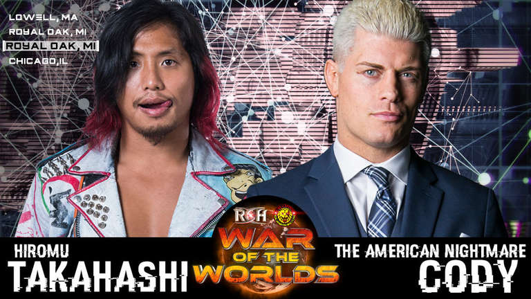 ROHWrestling.com has announced that former Ring of Honor World Champion “The American Nightmare” Cody Rhodes will be taking on New Japan Pro Wrestling’s Hiromu Takahashi at War of the Worlds: Royal Oak on May 12th in Royal Oak, Michigan.