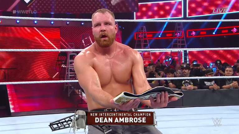 At tonight’s WWE TLC: Tables, Ladders, and Chairs event, Dean Ambrose defeated Seth Rollins to become the brand new Intercontinental Champion.
