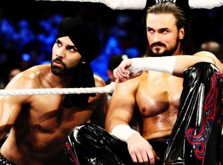 Former NXT Champion and former WWE Intercontinental and Tag Team Champion Drew McIntyre continues to recover from the injury that he suffered in his NXT Championship Match against Andrade “Cien” Almas at NXT TakeOver: WarGames. WWE.com posted a story about how McIntyre recently reunited with his former 3MB stablemate Jinder Mahal