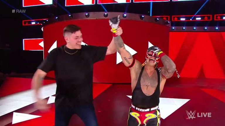 Following the match, Mysterio was joined by his son Dominic on the entrance stage in