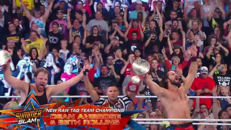 At Sunday night’s WWE SummerSlam event in Brooklyn, New York, the team of Seth Rollins and Dean Ambrose defeated Sheamus and Cesaro to become the brand new Raw Tag Team Champions.