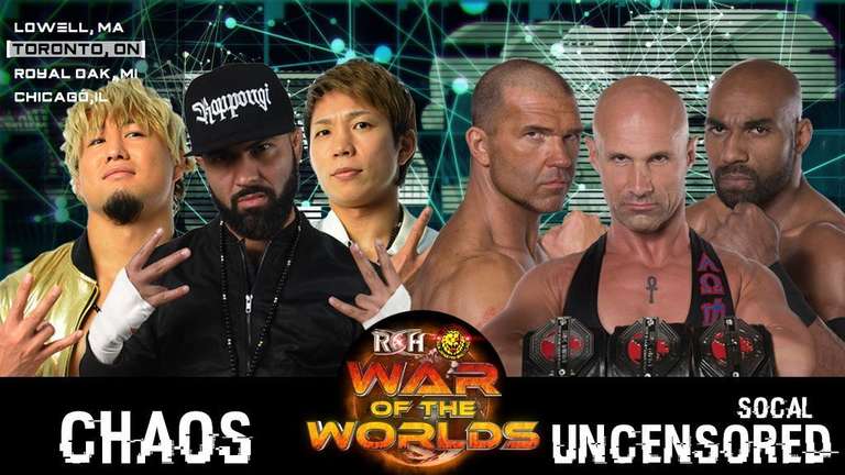 It’s been announced that SoCal Uncensored will be defending the Ring of Honor World Six-Man Tag Team Championship against Rocky Romero and Roppongi 3K at next Friday’s War of the Worlds: Toronto event.
