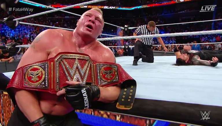 Brock Lesnar defeated Roman Reigns, Samoa Joe and Braun Strowman in a Fatal 4-Way match