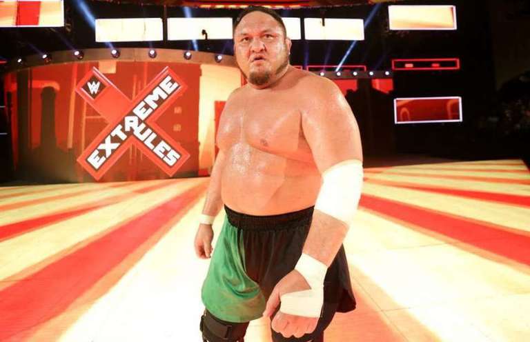Fans that attended the live event in Toronto on Saturday night noticed that the main event ended abruptly. You will see that Samoa Joe was bleeding badly a few minutes into the match. The trainer tried to clean him up as best as he could so that the match could continue